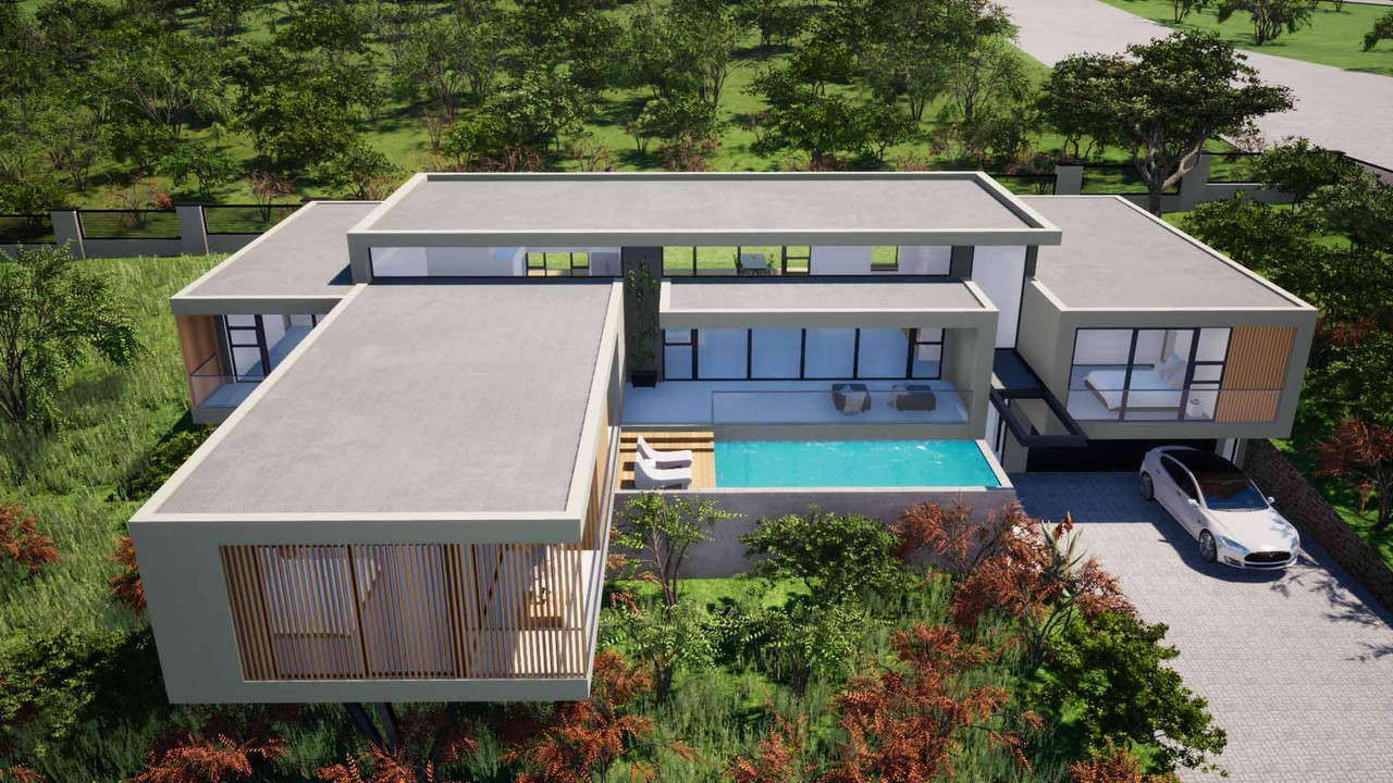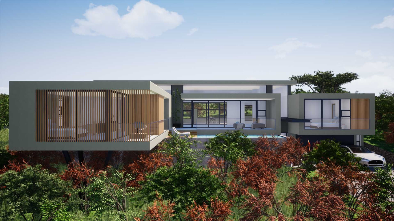 Rooted into the sloped landscape of the Nkonyeni Golf Estate. House BEM commands impressive south facing views.