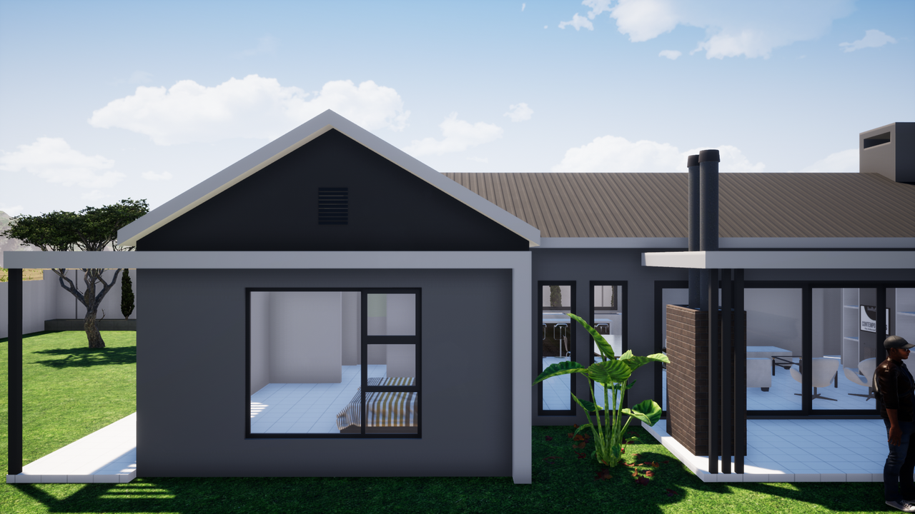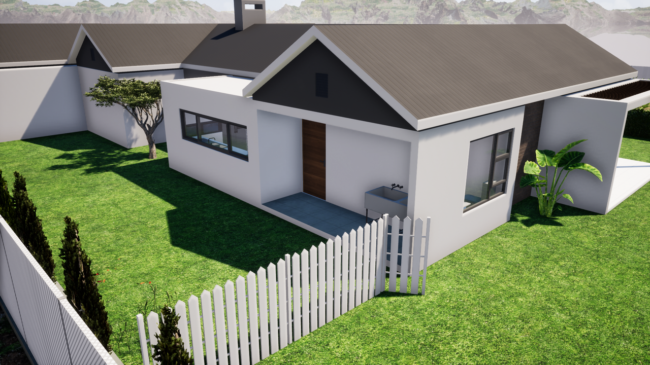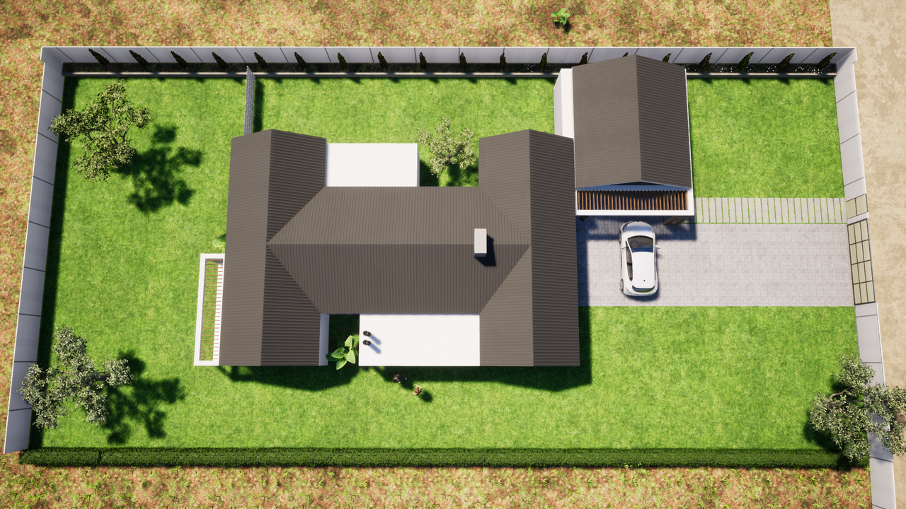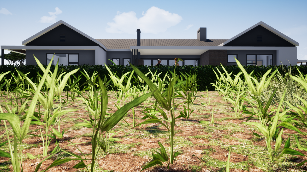 Project description: A contemporary farmhouse on an open landscape in Hawane, designed to harmonize the modern and traditional architectural concepts. The design features a double garage, guest toilet, open-plan living, dining, kitchen areas, two bedrooms sharing a bathroom and master bedroom within closet and ensuit. Most spaces celebrate the country views.